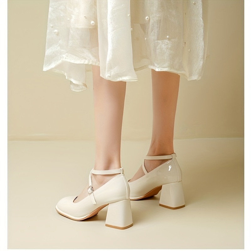 Pink 2024 New Cross-Band Mary Jane Women's Shoes French Thick Heel Single Shoes Spring