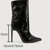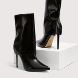 Women's Elegant Black Pointed-Toe Stiletto High Heel Ankle Boots with Back Zipper - Glossy Synthetic Cover