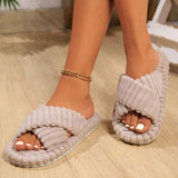 Plush Corduroy-like Slippers with Ankle Strap - Thick-Soled Open-Toe House, -Like Soft & Non-Slip Rubber Sole